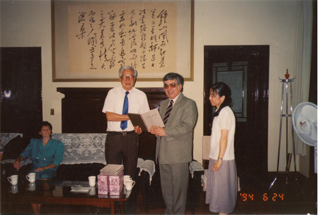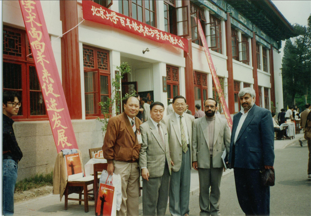 伊朗使馆文化参赞马赫达维普尔参加北京大学百年校庆活动与波斯语教师合影(1998)
