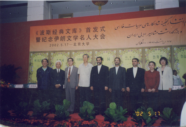伊朗驻华大使及文化参赞与《波斯经典文库》的译者在北京大学的首发式上(2002)